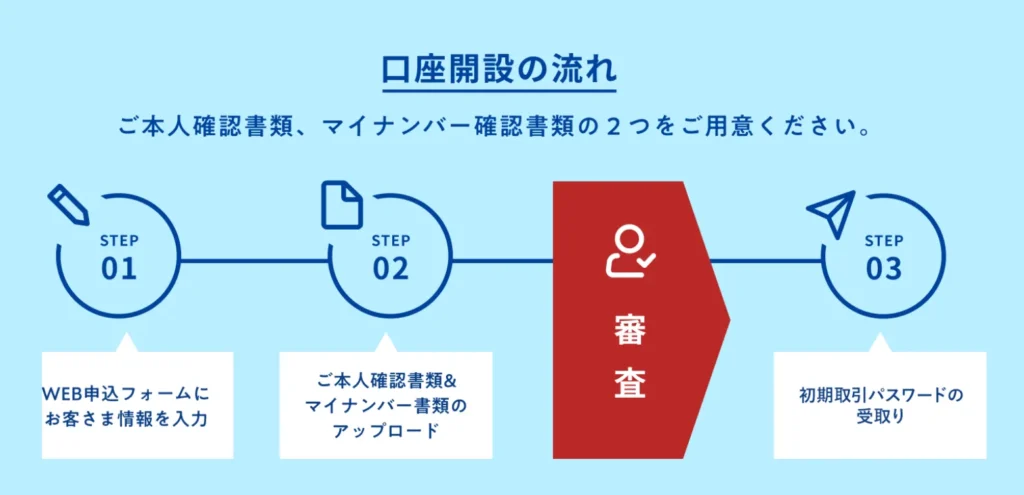 オンライン申込後、最短で当日〜翌営業日には口座開設が完了します(状況により数日かかることもあります)。