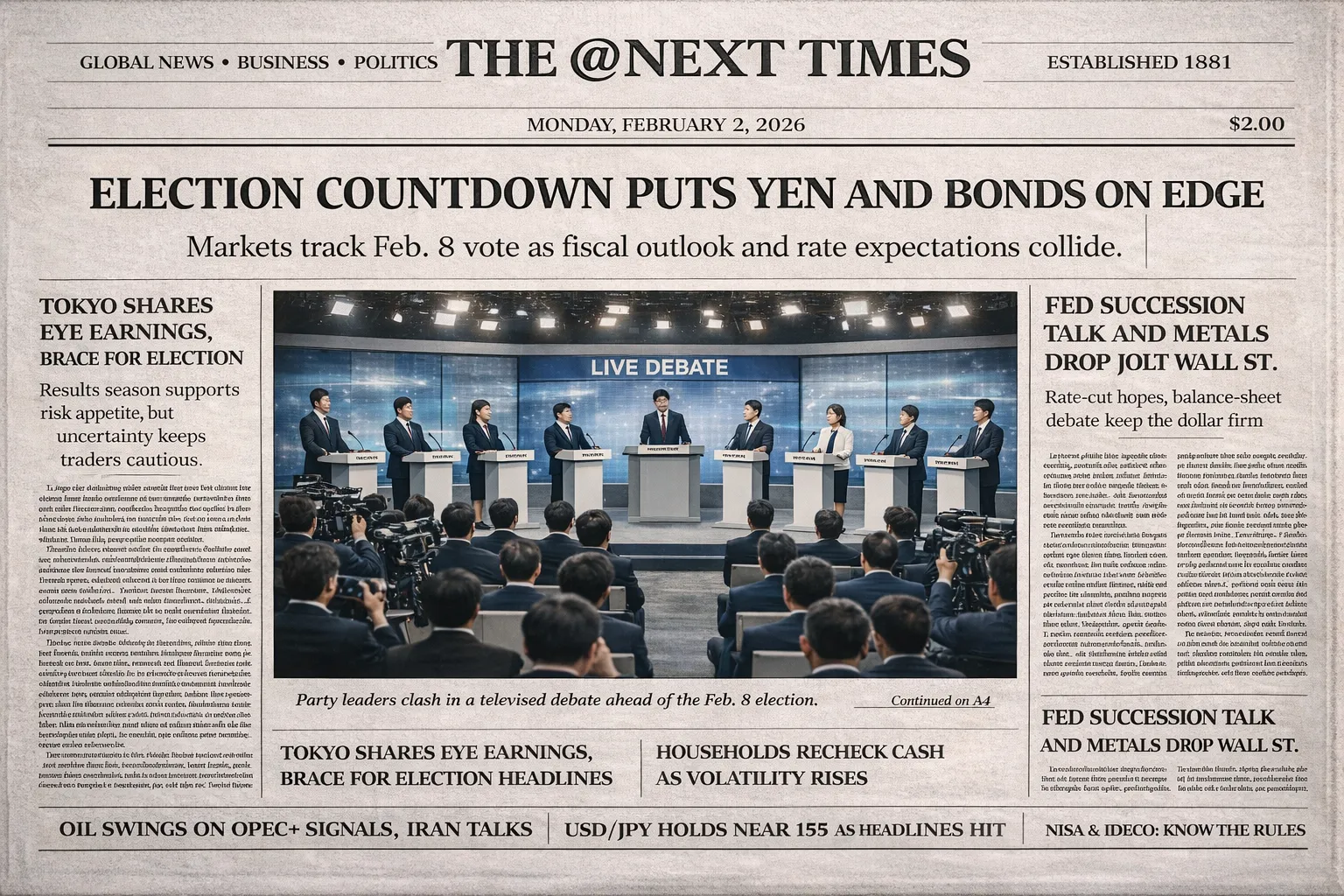 2026年2月2日は、週末にかけて米金融政策を巡る人事や貴金属急落の余波が意識され、リスク資産のムードが不安定です。