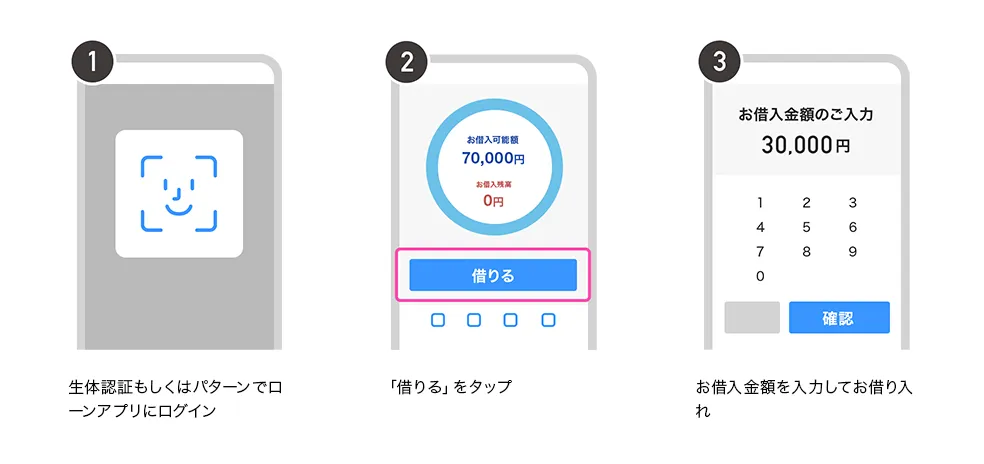 ※初回は本人確認書類の郵送が必要。借入限度額や適用金利は審査結果によります。