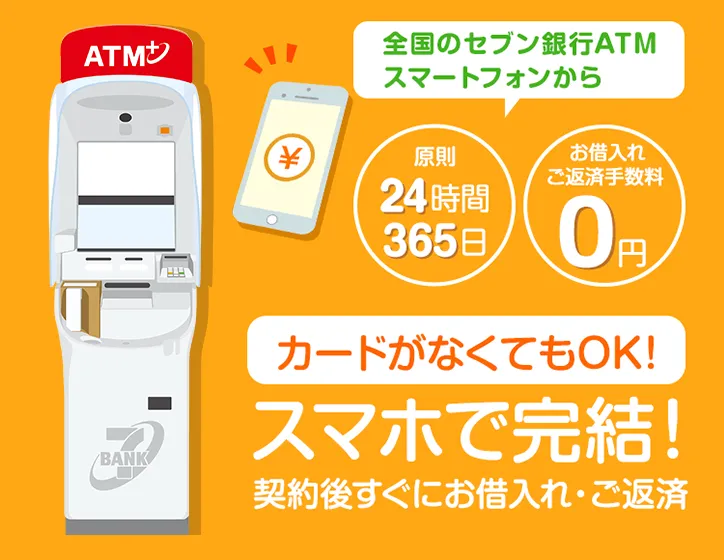 流通系銀行のセブン銀行カードローンは、ローンカードを発行せず既存キャッシュカードでそのままATM借入・返済が可能です。