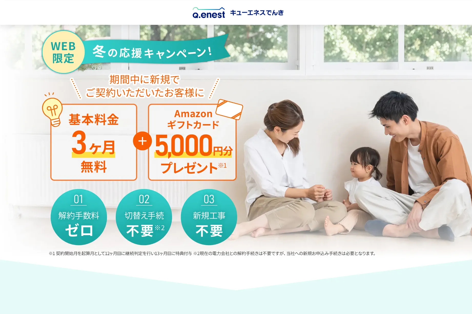 一方で「ポイントはそこまで重視しない」という人は、キューエネスでんきのように基本料金の割引で固定費を下げるタイプも含めて比較すると、トータルで納得のいく選び方がしやすくなります。