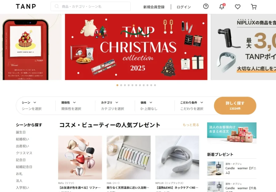 ギフト専門通販サイトの「TANP(タンプ)」などは、eギフト対応や豊富なギフト商品をそろえた通販サービスで、ショップ側のポイント還元とクレジットカードのポイントを同時に狙えるケースもあります。