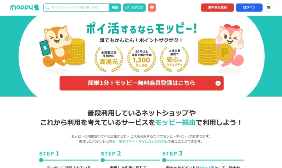 スマホやPCで会員登録し、アンケート回答やショッピングモニター、アプリのダウンロードなどの案件をこなすことで報酬ポイントを得られます。
