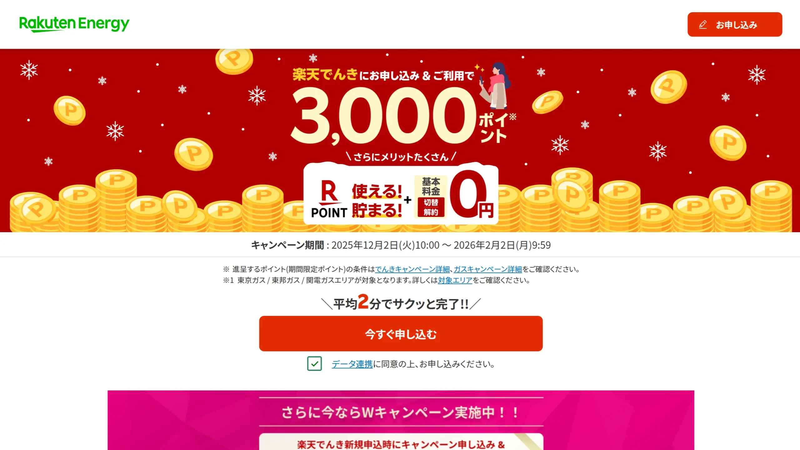 本コンテンツは一般的な情報提供を目的としたものであり、特定の電力・ガス商品の勧誘または投資助言を目的とするものではありません。料金・単価・ポイント還元・キャンペーン内容、燃料費等調整額(市場価格調整を含む)や再エネ賦課金、国の支援策の内容は変更される場合があります。お申し込み前には必ず、各社公式サイトの料金表・約款・重要事項説明をご確認ください。
