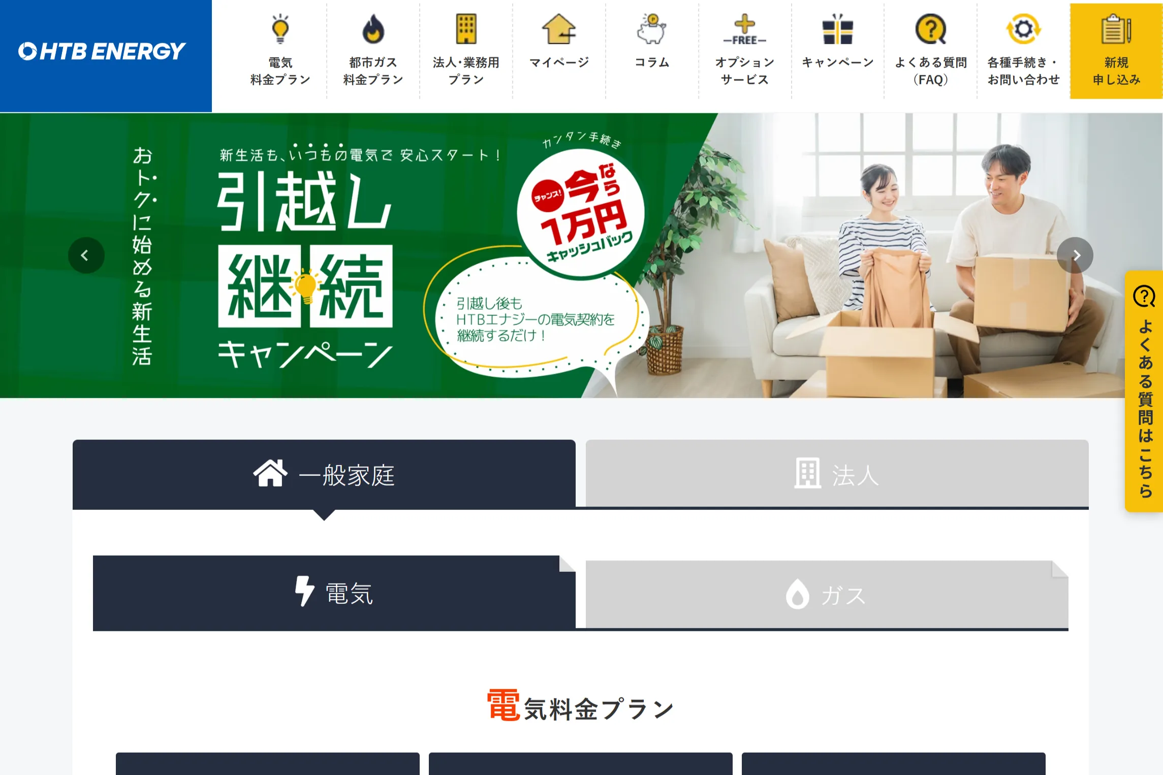 HTBエナジーは、「全国対応」「契約縛りなし」「解約金ゼロ」のプランが多いのが強みです。